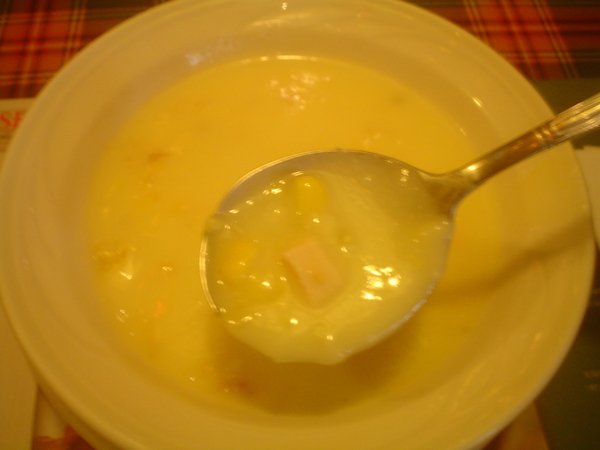 奶油雞茸玉米湯 -----> 奶味蠻重的,我和寶貝都覺得很不賴,而且中午只要加十元就有喔